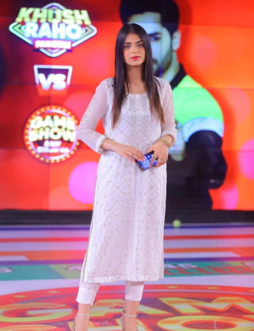 2PC Soft Chiffon Suit – Handmade Golden Mukesh & Booti Work